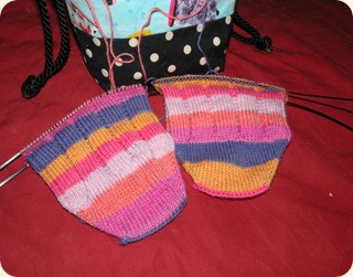 These are just a pair of stripey socks that I started last week when I was teaching a friend to knit socks 2 at a time toe up.